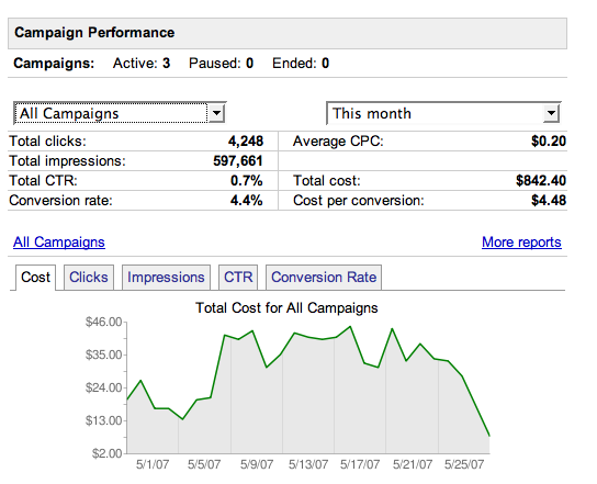As you can see, this account has generated 188 sales so far this month at an average cost of $4.48 per sale.