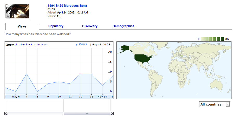 The video has been up a week and according to YouTube’s insight feature the video has already been viewed over 100 times primarily from searches within YouTube.