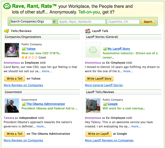 The website Telonu covers lets employees “Rave, Rant and Rate” about their workplace anonymously.