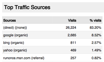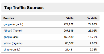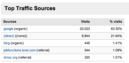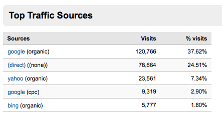 Although not fully optimized for search market demand, the site receives its share of organic search engine referrals, yet receives a higher percentage of its traffic from direct navigation and other referrals via other forms of online and offline advertising.