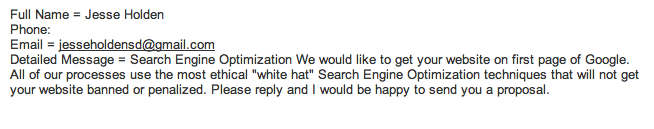 This results in the SEO salesperson contacting prospects usually via their “contact us” form who are most likely not in the market for their services because their site is already present in search engine results pages.