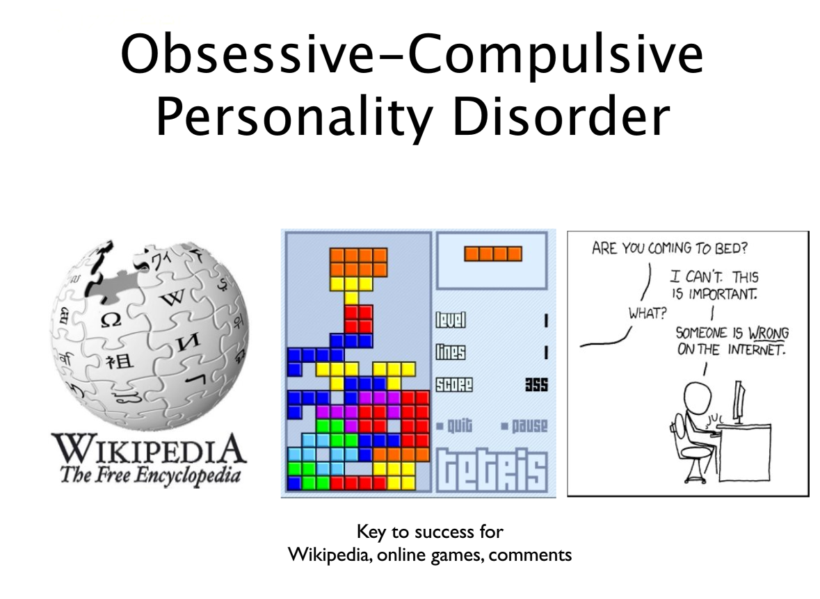 Peretti argues targeting an audience segment with Obsessive-Compulsive Personality Disorder is key to success for Wikipedia, online games and blog comments.