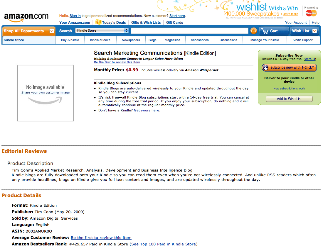 Shortly after the Amazon Kindle blog publishing program was announced, I enrolled this blog.