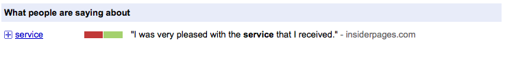 For some time Google has been providing a list of “What people are saying about” reviews of a particular business within their lists of local business search results.