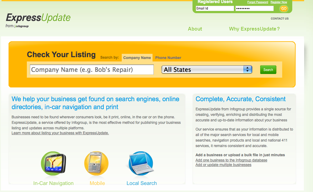 Update your business listing data through ExpressUpdateUSA.com and your corrected business information may find its way into both online directories and major search engines like Google.