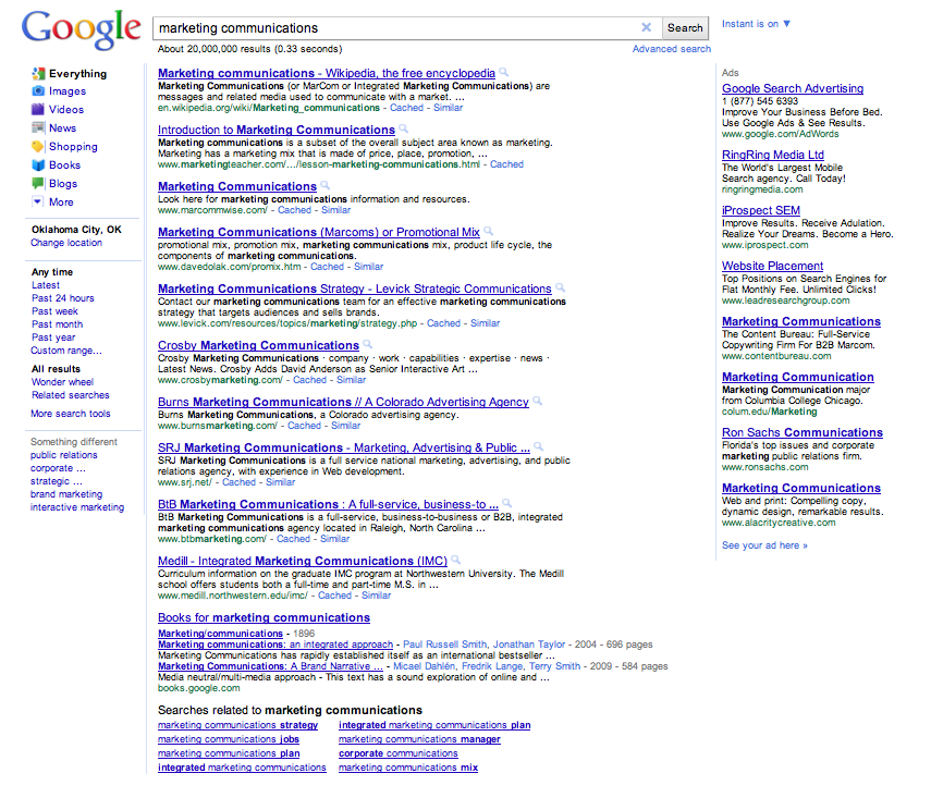 I ran a search query for marketing communications in my Google Chrome browser this morning only to find a single page of Google results.