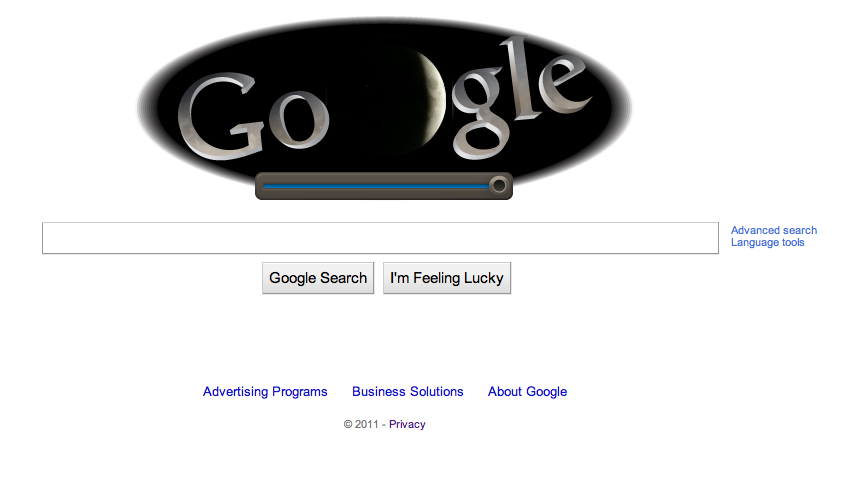 Google has prominently featured the ability to view via Youtube the total lunar eclipse visible to those earthlings in Australia, Asia, Africa, Europe, S.America but not North America on its home page today.