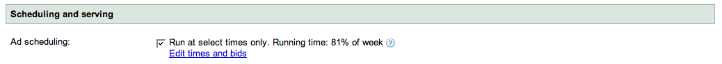 Google Adwords lets advertisers adjust their ad display times at the campaign level through its “Edit Campaign Settings” ad scheduling and serving section.