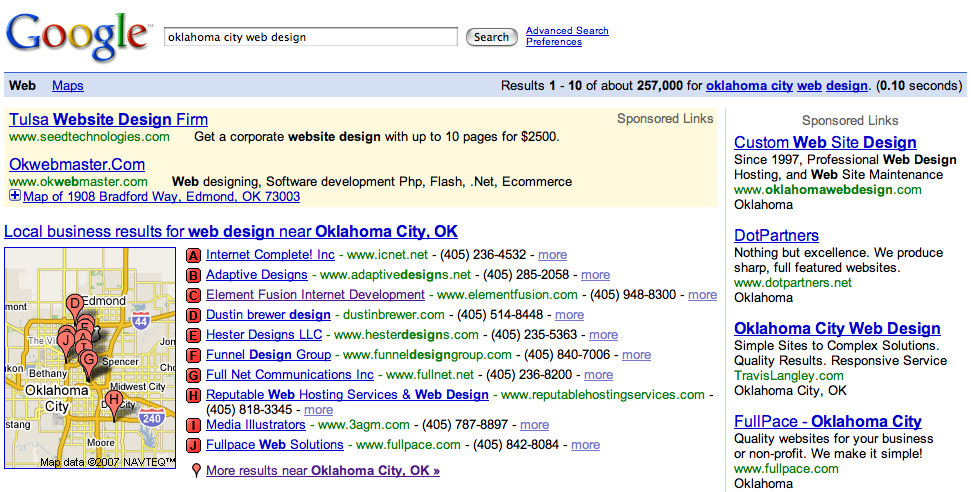 Google Local Business Results: Oklahoma City Internet Marketing –