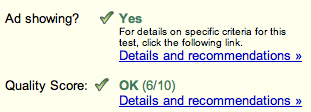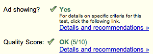 I have found examples of OK Quality Scores where the ad and its keywords weren’t being shown for numerous reasons.