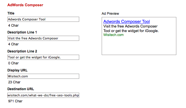 Once added to your iGoogle page, Google users can create and then test whether or not their Adwords ads meet Google text ads maximum characters per line criteria.
