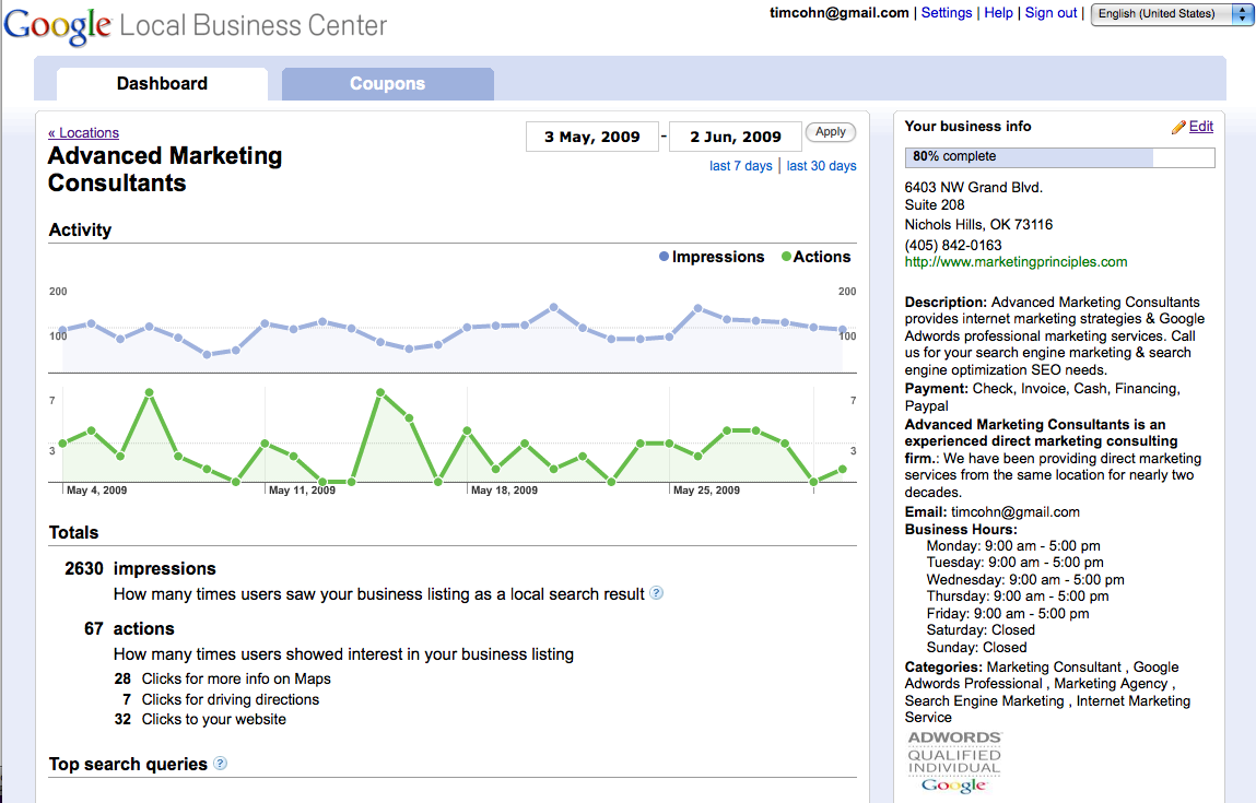 I am not sure my receiving local business results for non geo-modified terms has occurred coincidentally with my having supplied a specific location to gmail or not.
