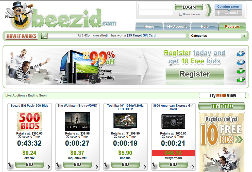 I saw a television ad for the penny auction website Beezid.com.