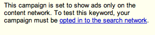 Also appearing in my Adwords account for the first time are “Bid Below First Page” notifications: