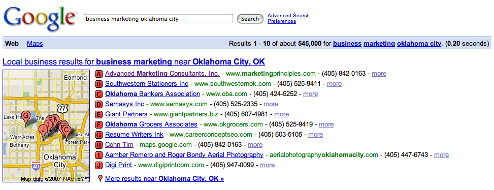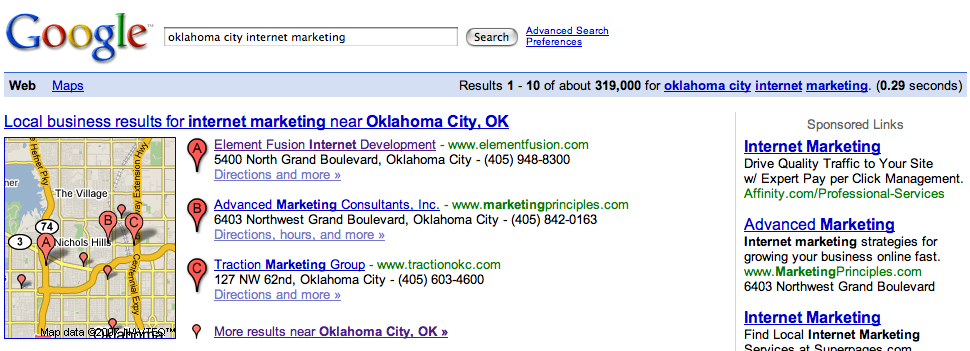 Google Local Business Results: Oklahoma City Internet Marketing –