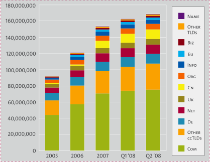 By mid 2008 there were 168 million domain name registrations across all of the Top Level Domain Names (TLDs).