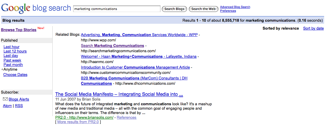 Another way to verify whether or not a blog is receiving optimum distribution is to check whether or not its in Google’s Blog Search.