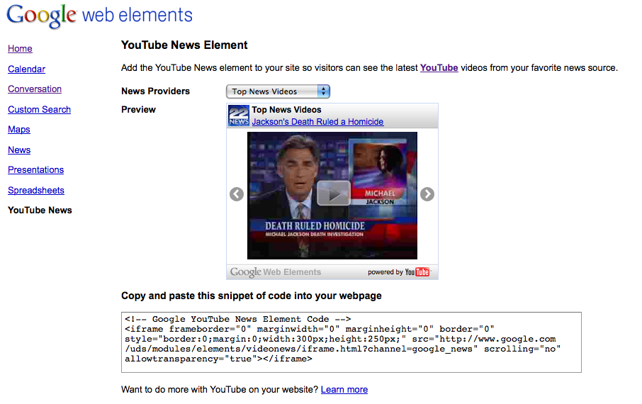 However I haven’t yet been able to post a news roll like those featured on the Google Web Elements site.