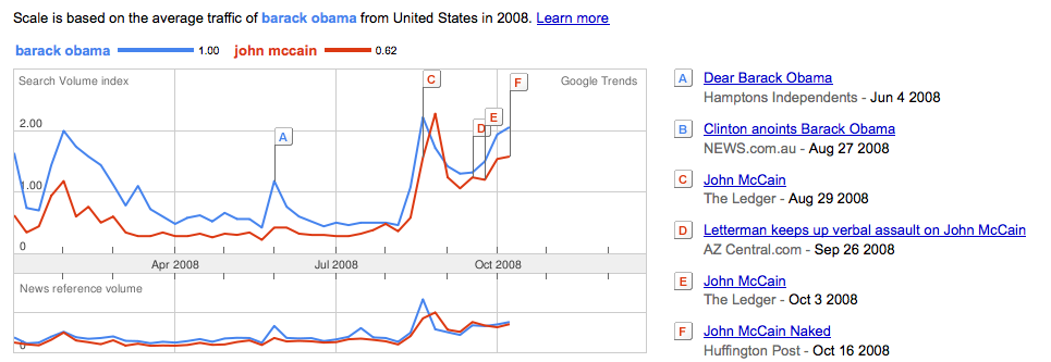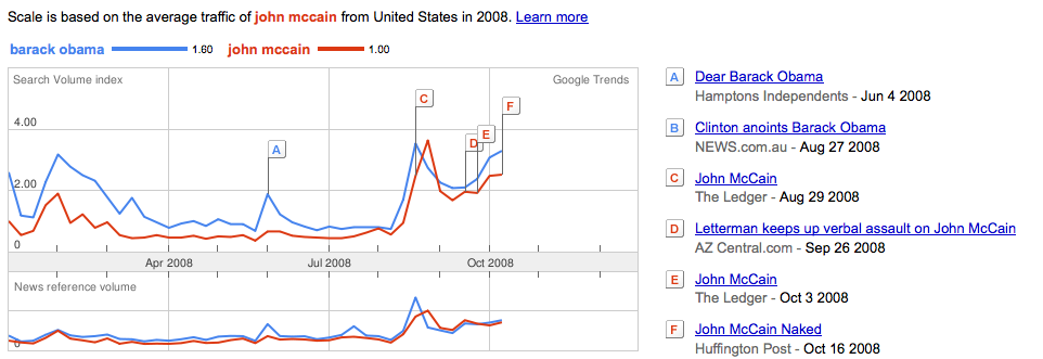 The same search data explained another way shows Barack Obama receives 1.62 searches for every search John McCain receives in Google.