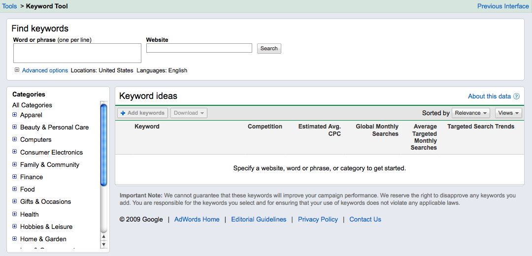 Advertisers can then enter keywords or a website to generate a list of keywords to evaluate and explore further.