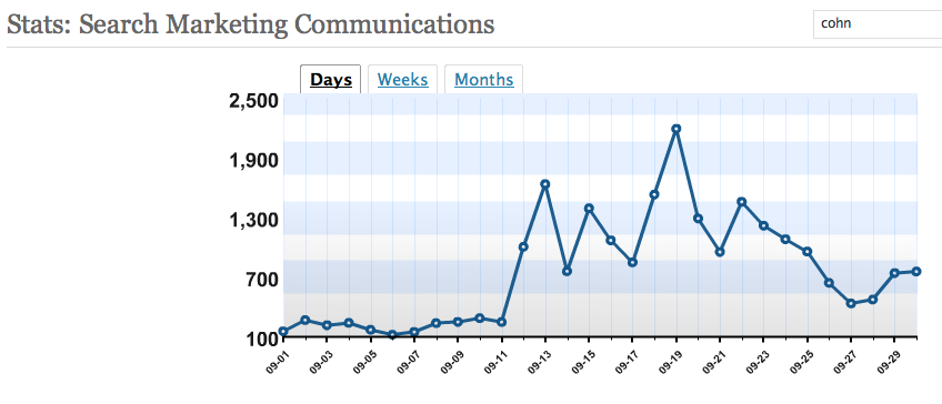 By the end of October 2008, cohn.wordpress.com had been viewed 86,750 times since its launch in September 2006.